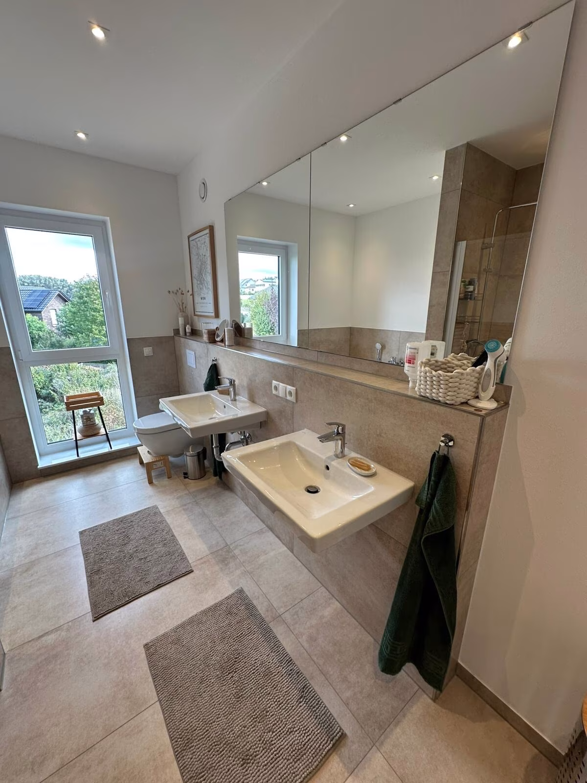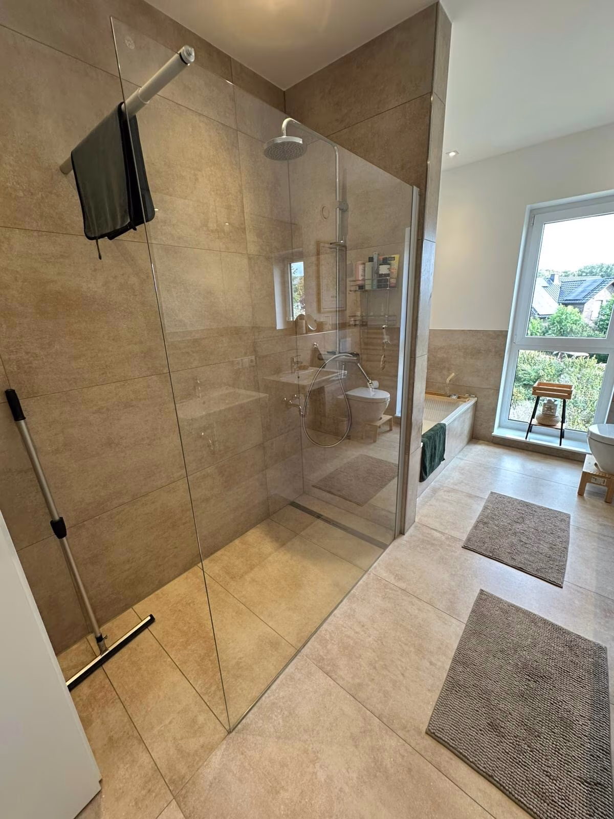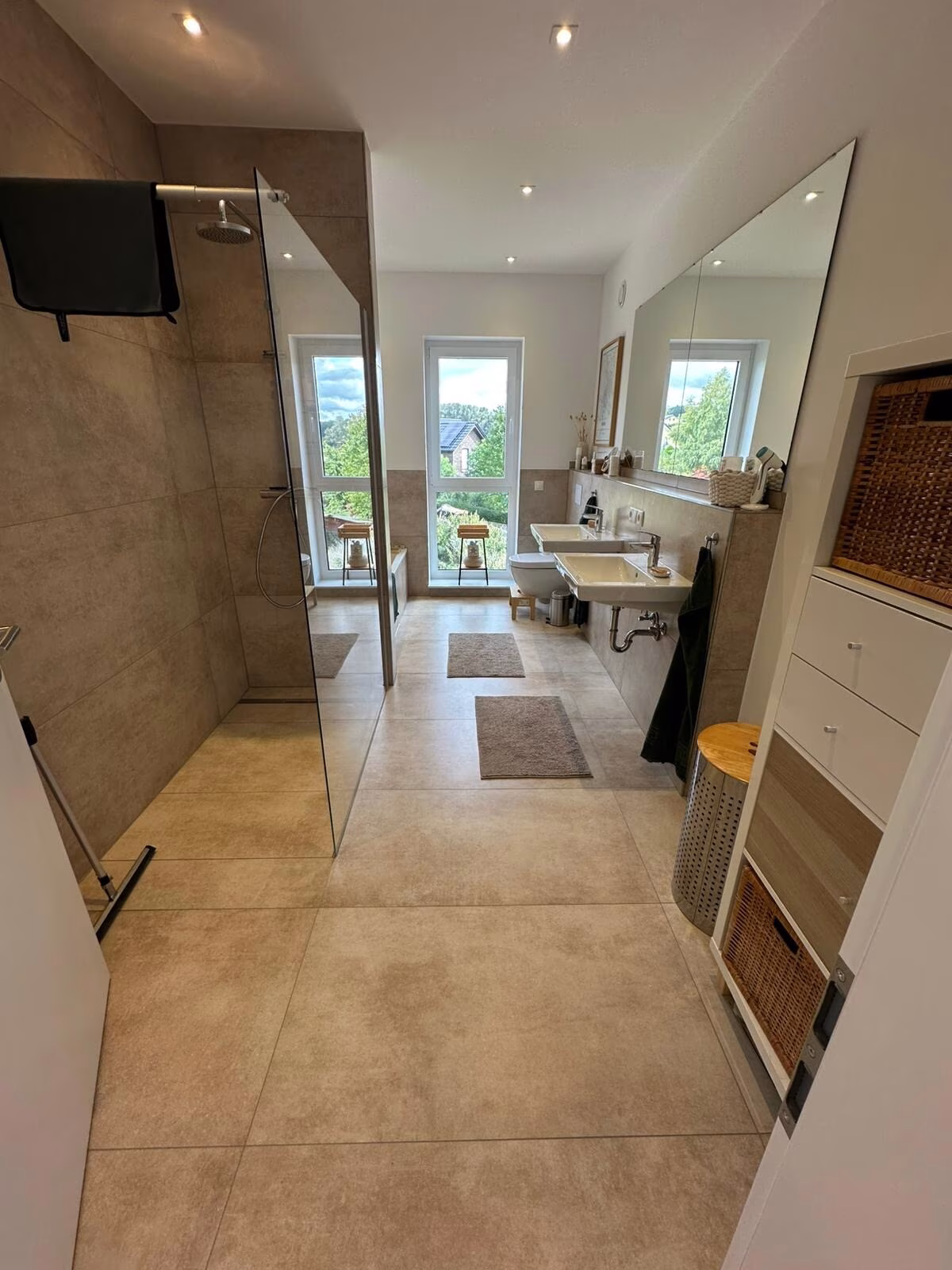 •2 moderne Bäder mit Walk-in-Regendusche, zusätzlich Badewanne