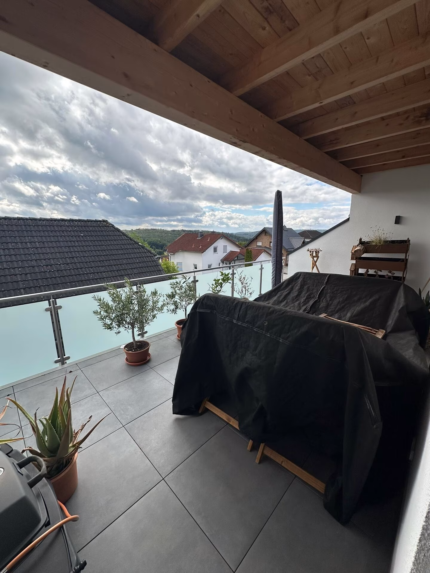 •Überdachter Südbalkon mit Blick ins Grüne