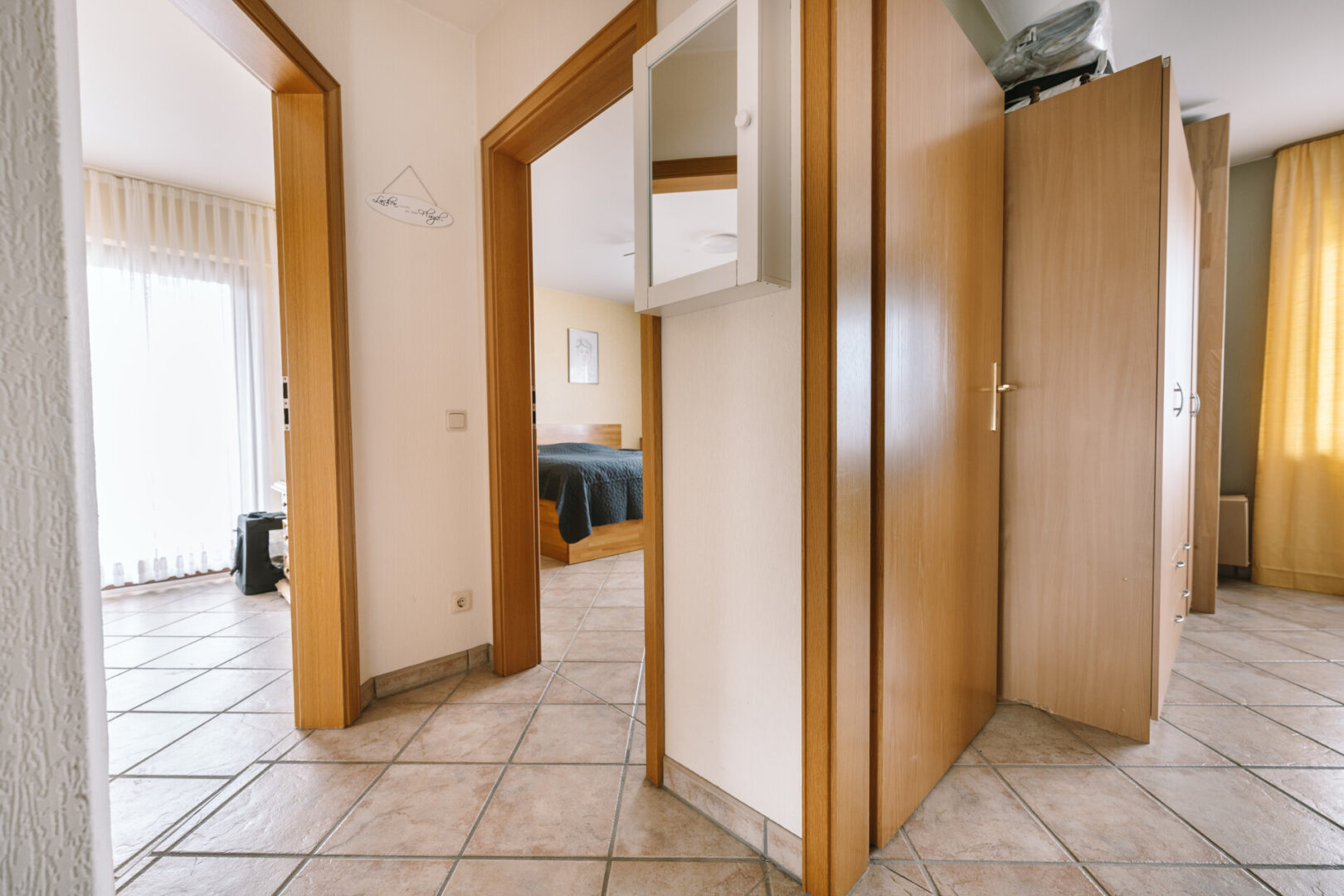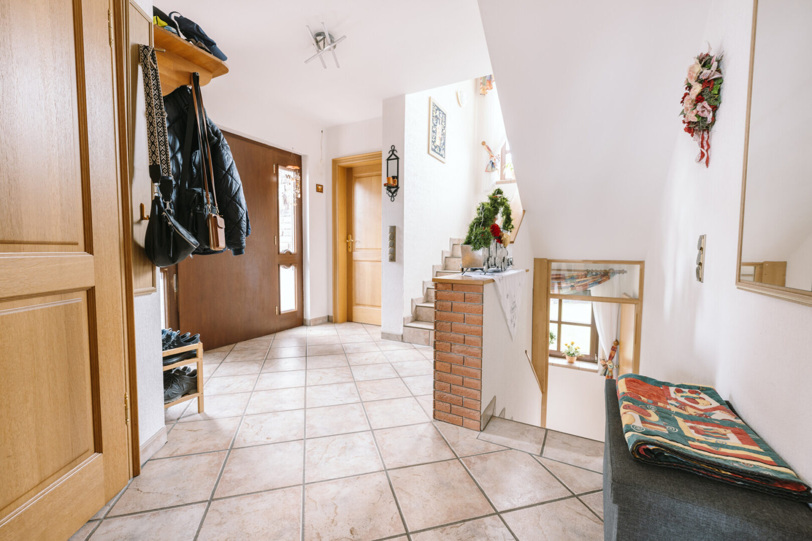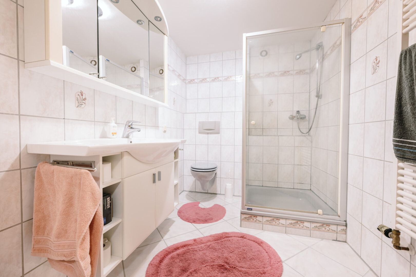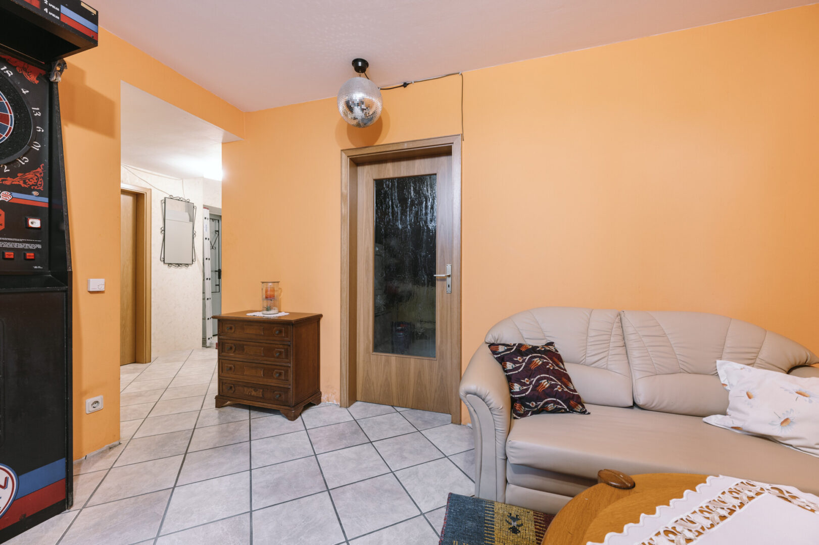 Der Keller ist weit mehr als ein reiner Nutzbereich. Die Räume sind ausgebaut und eignen sich für Hobbys, Fitness oder als zusätzlicher Aufenthaltsbereich. Ein weiteres Badezimmer mit Dusche erweitert die Nutzungsmöglichkeiten. Von hier aus besteht auch der direkte Zugang zur Garage, was im Alltag und bei schlechtem Wetter besonders komfortabel ist.