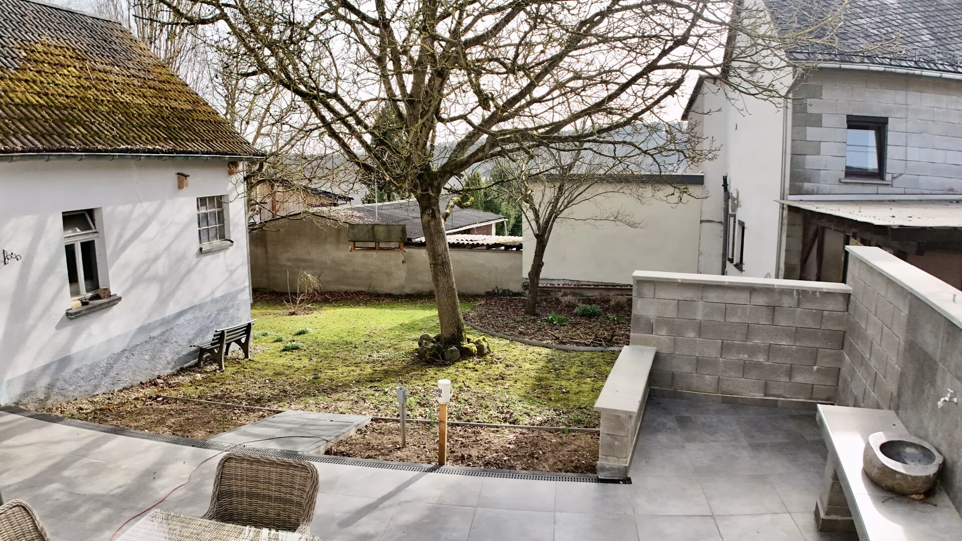 - Große Terrasse mit Zugang zum Garten